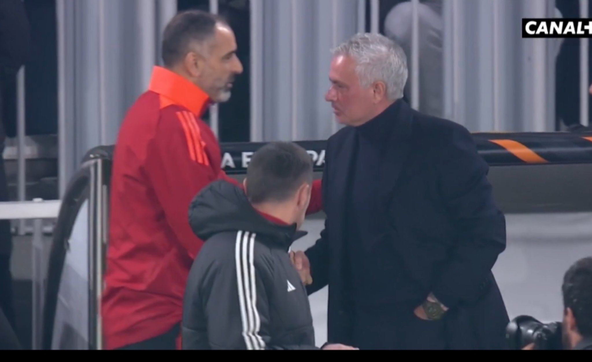 01月24日訊 費內(nèi)巴切歐聯(lián)0比0戰(zhàn)平里昂,賽后穆里尼奧與里昂主帥握手致意時鬧了笑話,他把里昂理療師當成了主帥,在前者的提醒下,穆帥最終成功地與里昂主帥薩吉握到了手。
