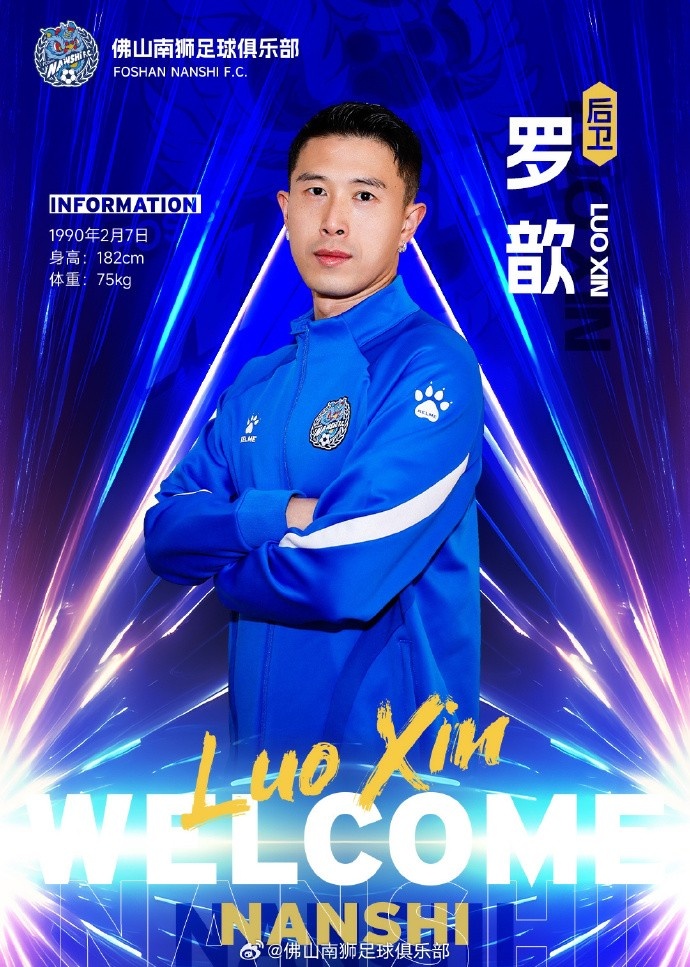 1月25日訊 中甲佛山南獅俱樂部官方宣布,上賽季效力南通支云的羅歆正式加盟。