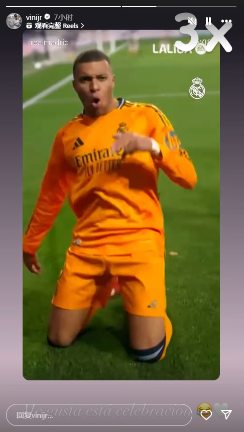 發(fā)布時間:2025年01月26日 14:41點擊:欄目:足球新聞 1月26日訊 西甲第21輪,皇馬客場3-0完勝巴拉多利德,姆巴佩上演帽子戲法。賽后,維尼修斯更新了社媒,向姆巴佩送上祝賀。維尼修斯轉(zhuǎn)發(fā)了姆巴佩的進球視頻,并寫道:3個進球!我喜歡你這個慶祝動作 除特別注明外,本站所有內(nèi)容均為九球直播整理排版,轉(zhuǎn)載請注明出處:哥倆好!維尼修斯祝賀姆巴佩戴帽:我喜歡你的慶祝動作 本文標簽: 足球 西甲 皇家馬德里 姆巴佩