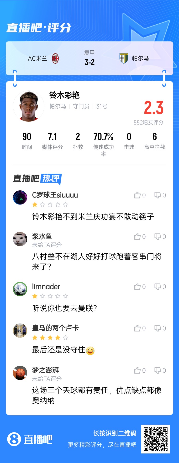 發(fā)布時(shí)間:2025年01月26日 21:55點(diǎn)擊:欄目:足球新聞 01月26日訊 帕爾馬2-3不敵米蘭,本場比賽鈴木彩艷表現(xiàn)欠佳,3粒丟球均與他有關(guān)。鈴木彩艷送點(diǎn),普利西奇點(diǎn)射↓賴因德斯單刀推近角得手↓丘庫埃澤絕殺,鈴木彩艷撲進(jìn)球門↓ 除特別注明外,本站所有內(nèi)容均為九球直播整理排版,轉(zhuǎn)載請(qǐng)注明出處:彩艷都懵了...遭米蘭補(bǔ)時(shí)2球逆轉(zhuǎn),3粒丟球鈴木彩艷均有失誤 本文標(biāo)簽: 足球 意甲 AC米蘭 帕爾馬