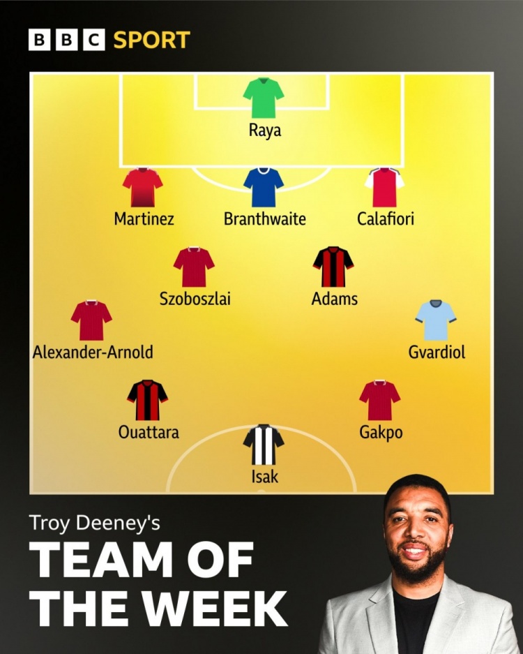 1月27日訊 英超第23輪比賽戰(zhàn)罷,前英超射手、BBC評(píng)論員迪尼評(píng)出了本輪最佳陣容,伊薩克、阿諾德、利桑德羅、拉亞在列。