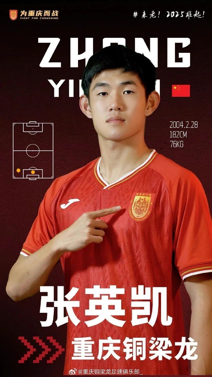 重慶銅梁龍也更新了張英凱的球員履歷: