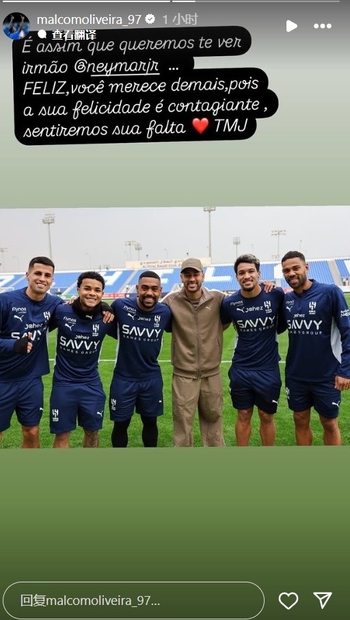 1月29日訊 利雅得新月官方宣布,和內(nèi)馬爾已經(jīng)協(xié)商解約。效力利雅得新月的巴西邊鋒馬爾科姆更新動態(tài),告別了內(nèi)馬爾。