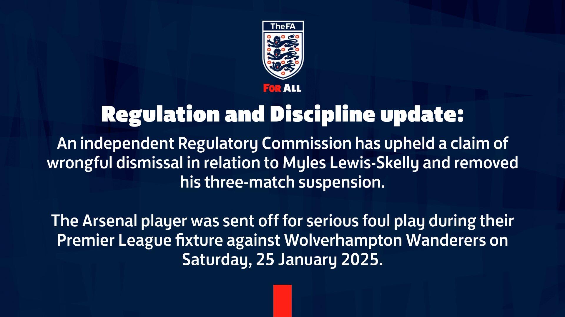 阿森納1-0客勝狼隊(duì)的比賽,斯凱利第43分鐘被直紅罰下,阿森納賽后對(duì)此進(jìn)行了上訴。