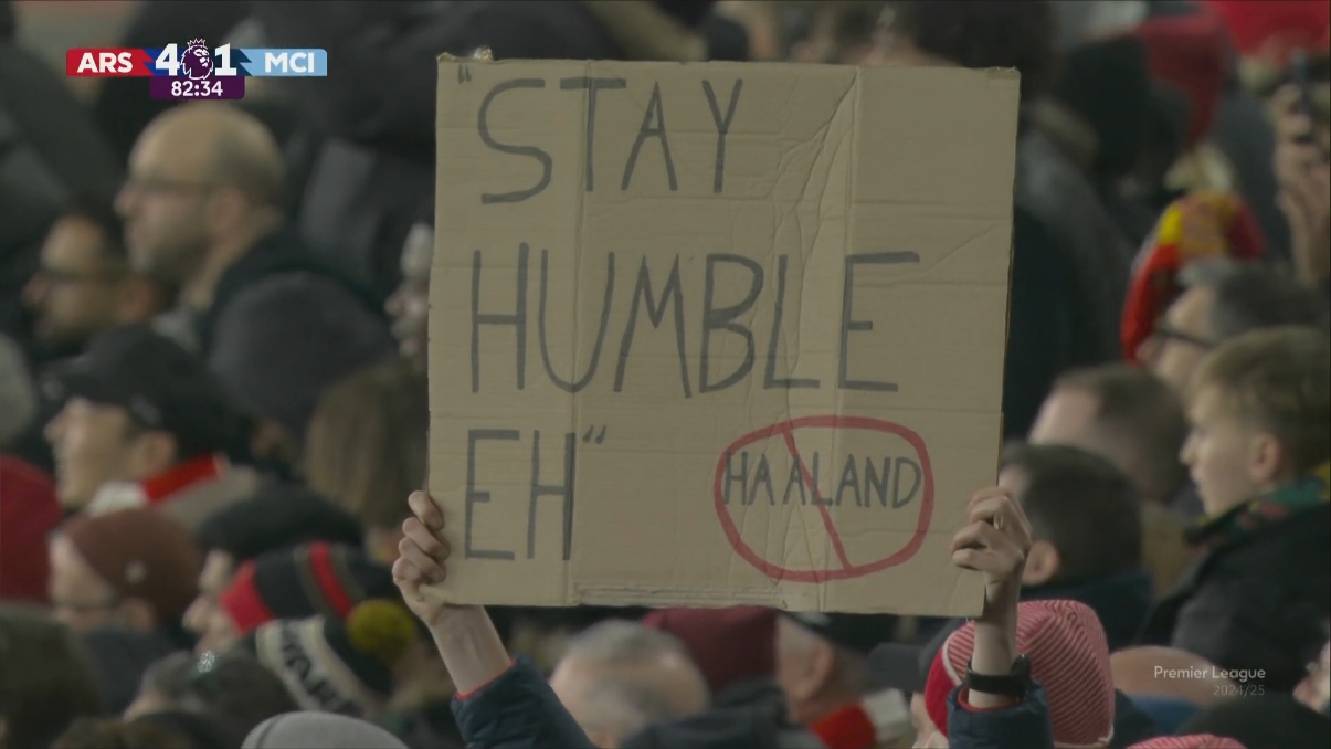 殺人誅心!看臺阿森納球迷高舉標語:stay humble哈蘭德