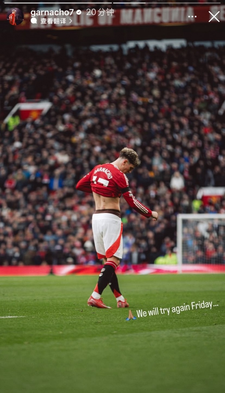 2月3日訊 本輪英超比賽中,曼聯(lián)主場0-2不敵水晶宮。賽后,加納喬更新社媒,為球隊鼓舞士氣。