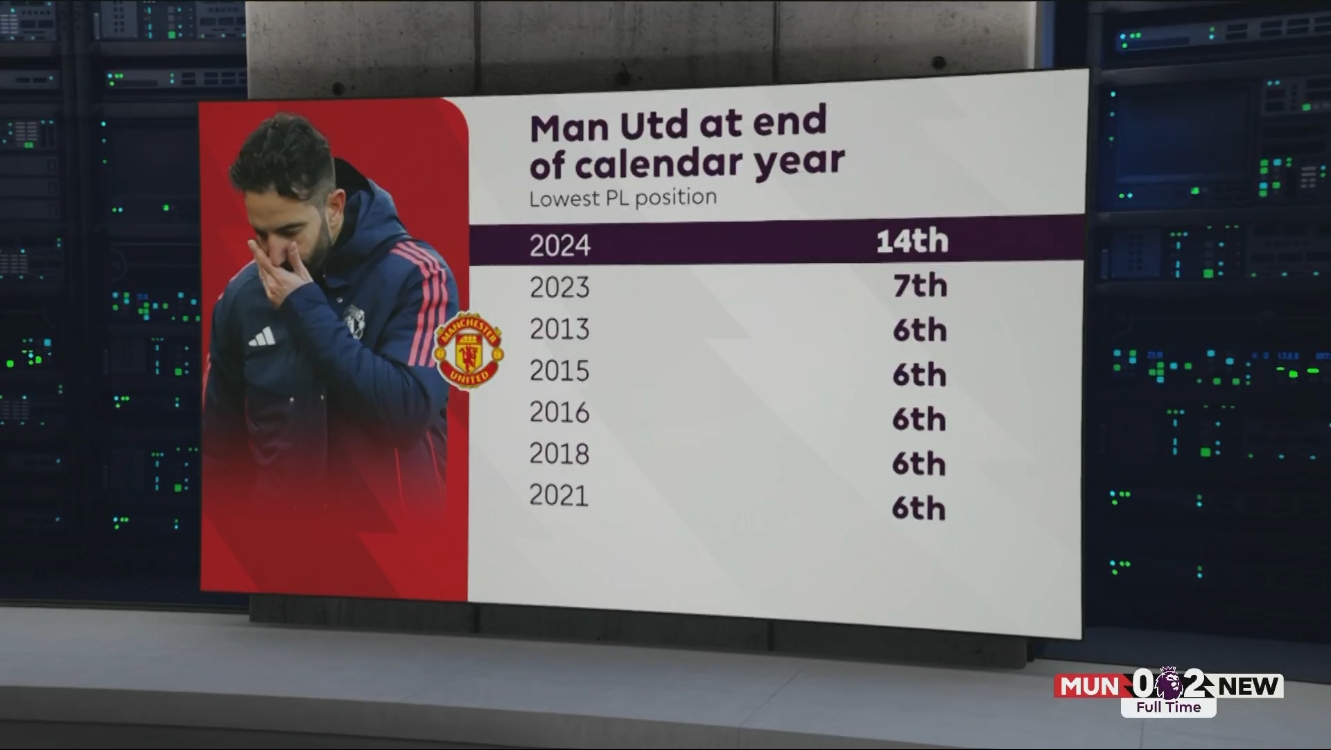 除特別注明外,本站所有內(nèi)容均為九球直播整理排版,轉(zhuǎn)載請注明出處:歷史最差!曼聯(lián)2024年收官僅排英超第14,此前最差也能排第7