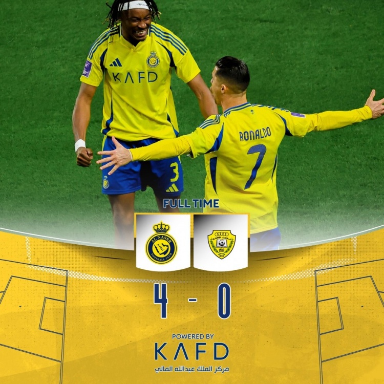 亞冠-利雅得勝利4-0迪拜祈禱距榜首3分 C羅雙響馬內(nèi)造點(diǎn)+獻(xiàn)助攻