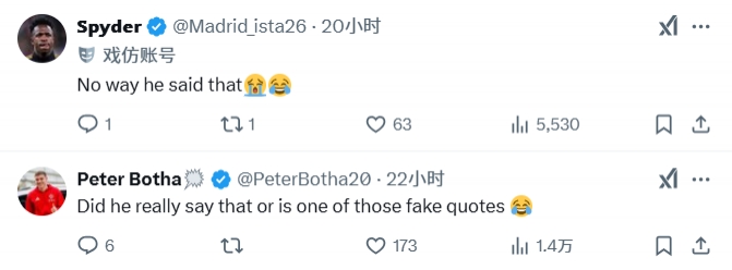 幾個小時后,他又轉(zhuǎn)載了自己的言論。隨著皇馬vs曼城比賽臨近,最近幾小時得到了其他眾多球迷號的轉(zhuǎn)載,但自始至終都沒有任何認(rèn)證媒體或者記者轉(zhuǎn)發(fā),也找不到任何阿圭羅關(guān)于此的直播或者播客的切片。