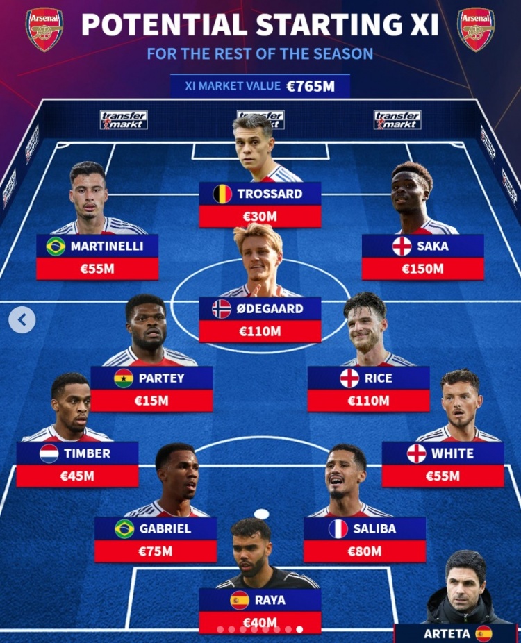 德轉(zhuǎn)預(yù)測(cè)阿森納下半程首發(fā):總身價(jià)7.65億歐元