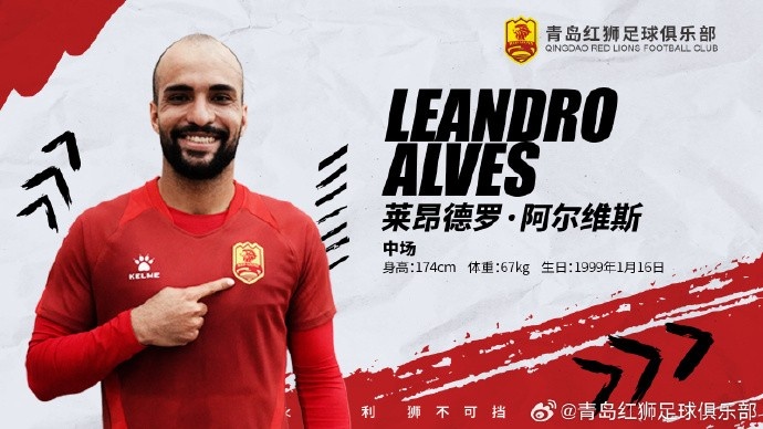 2月17日訊 中甲青島紅獅俱樂部官方宣布,巴西邊鋒萊昂德羅-阿爾維斯正式加盟。目前,青島紅獅陣中已經擁有里瓦爾迪尼奧、若昂-佩德羅、萊昂德羅-阿爾維斯三名外援。