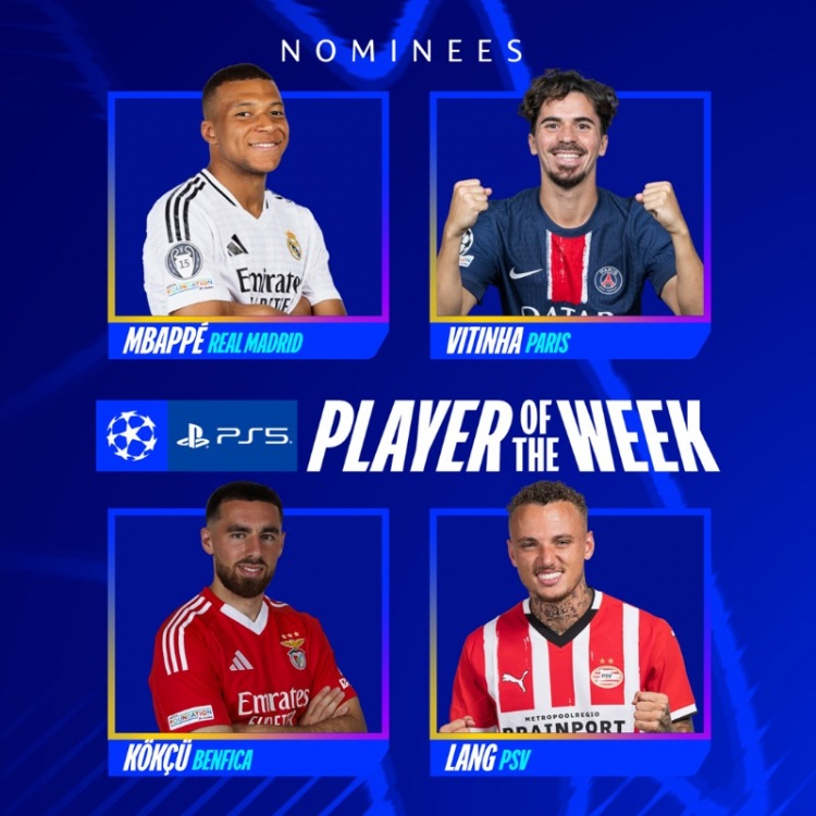 2月20日訊 歐冠淘汰賽階段附加賽次回合比賽已經(jīng)全部結(jié)束,歐冠官方公布了本周最佳球員的候選名單,其中,對曼城戴帽的姆巴佩領(lǐng)銜,維蒂尼亞入選。