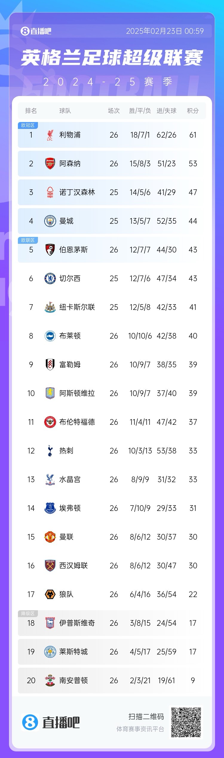 2月23日訊 阿森納vs西漢姆,槍手主場(chǎng)0-1落??!熱刺4-1伊普斯維奇。