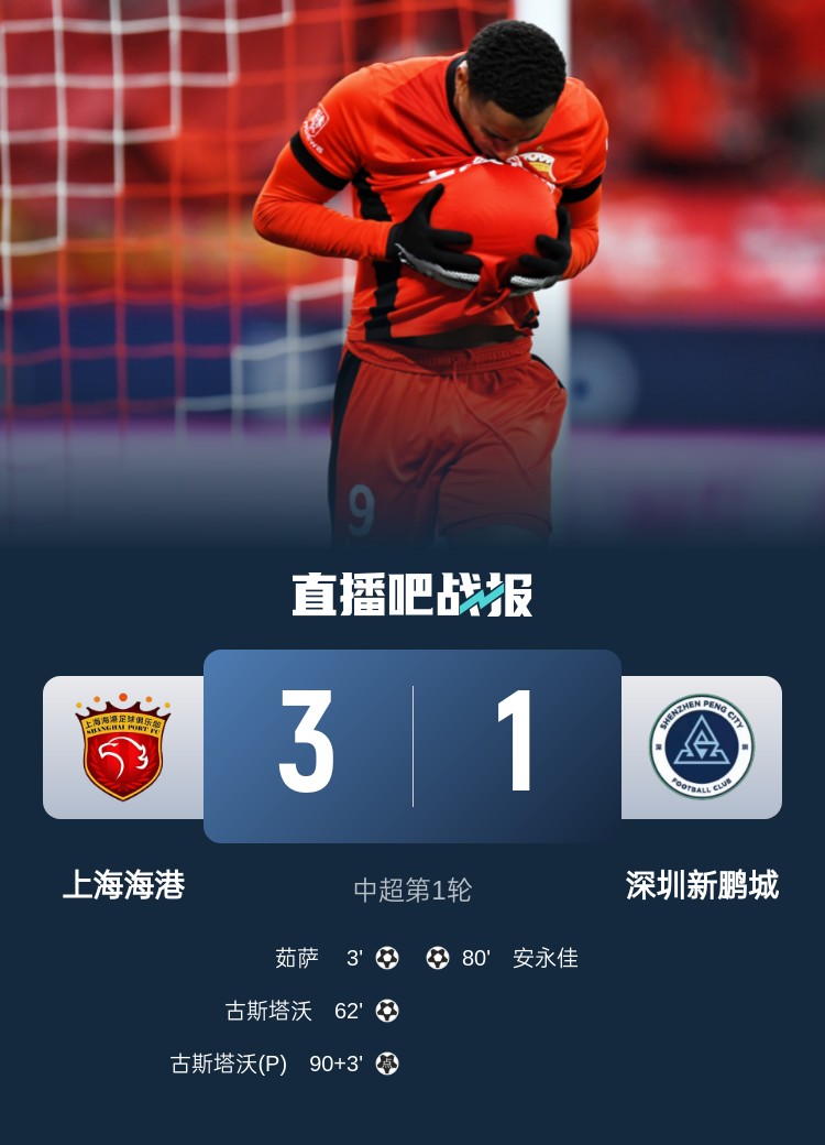 周日下午進(jìn)行的4場比賽,全部以平局告終。但周日晚間進(jìn)行的首輪最后一場比賽,衛(wèi)冕冠軍海港3-1擊敗新鵬城,及時(shí)止住了今年三連敗的頹勢。