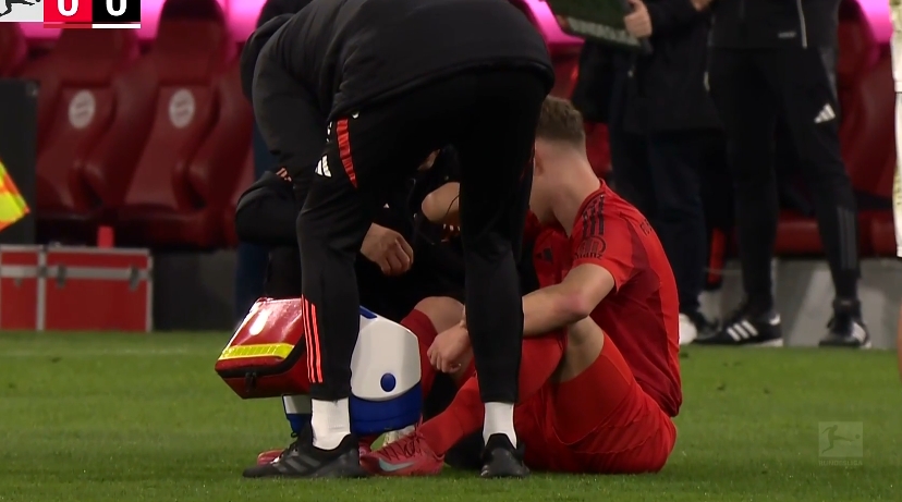 02月24日訊 拜仁vs法蘭克福第43分鐘,基米希坐在地上無法堅(jiān)持!格雷茨卡登場(chǎng)!