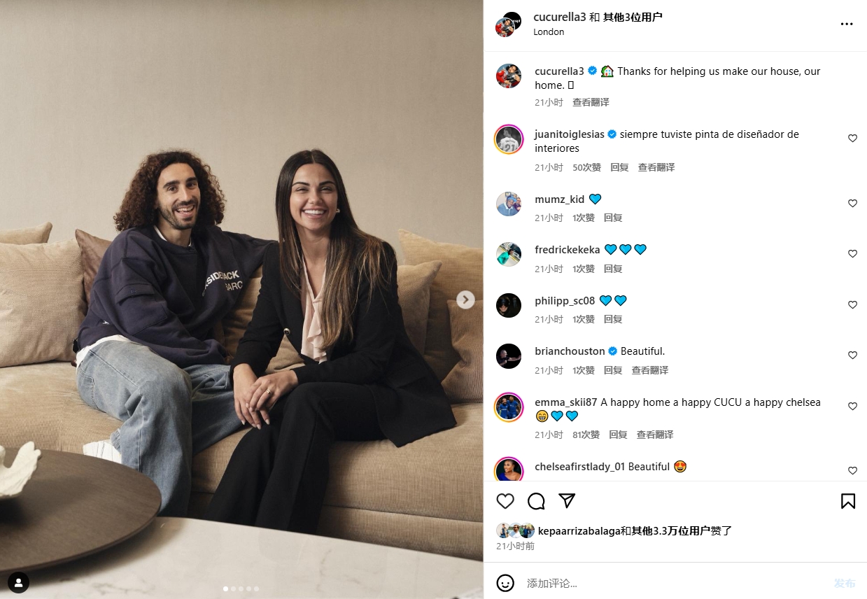 庫(kù)庫(kù)雷利亞也發(fā)文感謝BoConcept為房屋提供的設(shè)計(jì)以及相關(guān)幫助:“感謝你幫我們建造房子,我們的家。”