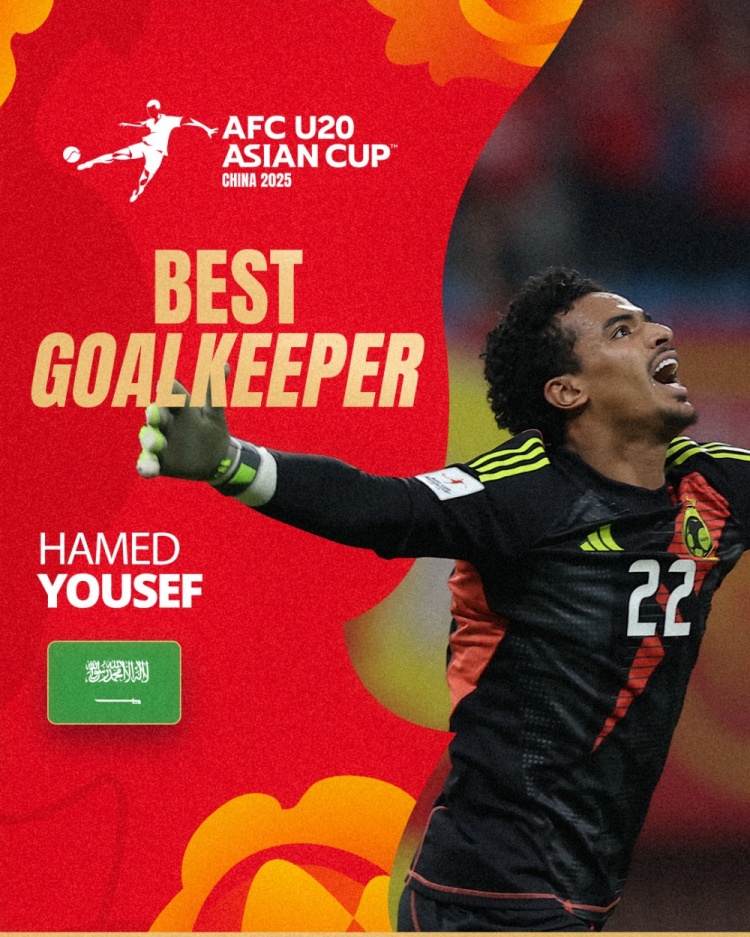 3月1日訊 亞足聯(lián)官方消息,沙特U20隊(duì)門(mén)將哈米德-尤瑟夫當(dāng)選U20亞洲杯最佳門(mén)將。