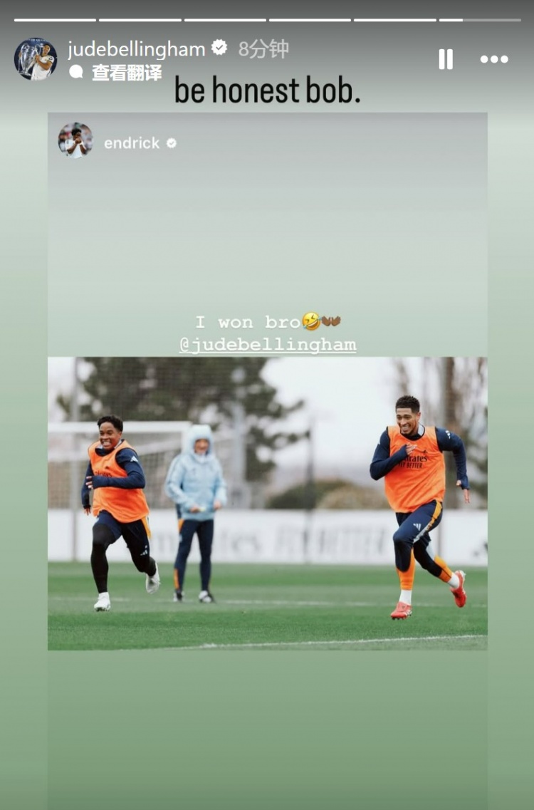 發(fā)布時間:2025年03月02日 23:50點擊:欄目:足球新聞 3月2日訊 北京時間下周三凌晨4:00,皇馬將在歐冠1/8決賽首回合中對陣馬競。目前皇馬正在進行賽前備戰(zhàn),貝林和恩德里克分享了訓(xùn)練中的趣事。恩德里克曬出自己和貝林厄姆賽跑的照片,并調(diào)侃道:“兄弟,我贏了。”貝林回答他:“誠實點,小老弟?!?/p> 除特別注明外,本站所有內(nèi)容均為九球直播整理排版,轉(zhuǎn)載請注明出處:恩德里克調(diào)侃自己跑贏了貝林厄姆,貝林:誠實點,小老弟 本文標簽: 足球 西甲 皇家馬德里 貝林厄姆