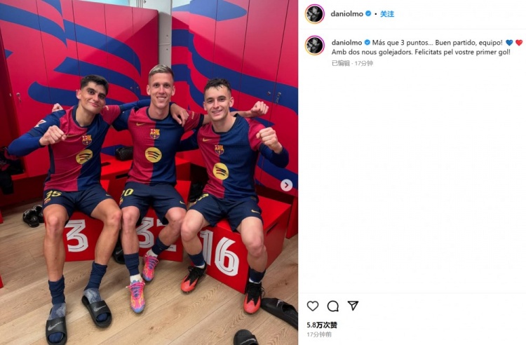 奧爾莫也在賽后曬出和兩位被助攻隊友的合照,并配文:“再添3分……全隊交出頂級表現(xiàn)!和兩位進(jìn)球者在一起,祝賀你們收獲首球!”