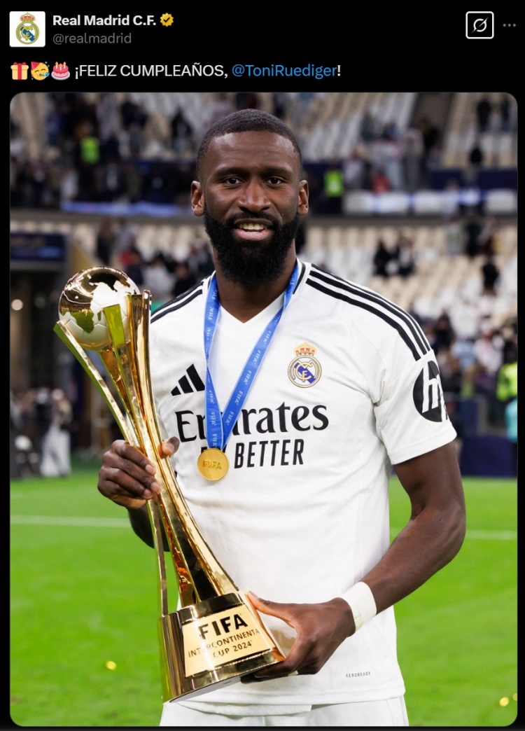 3月3日訊 出生于1993年3月3日的呂迪格今日迎來32歲生日,皇馬為這名中衛(wèi)送上生日祝福。