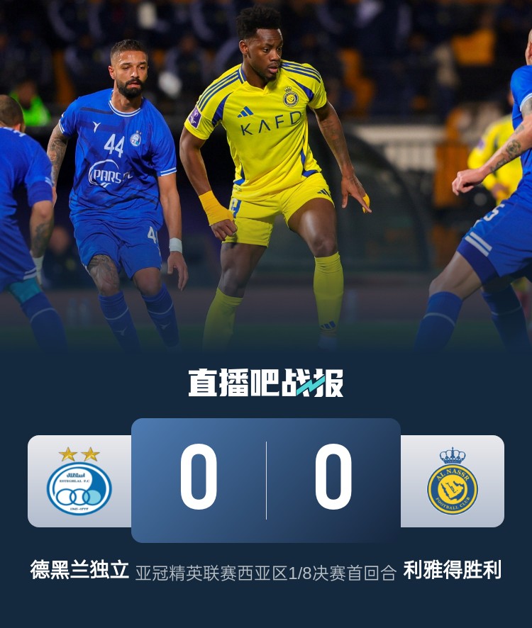 杜蘭屢失良機、C羅缺陣,利雅得勝利客場0-0戰(zhàn)平德黑蘭獨立。