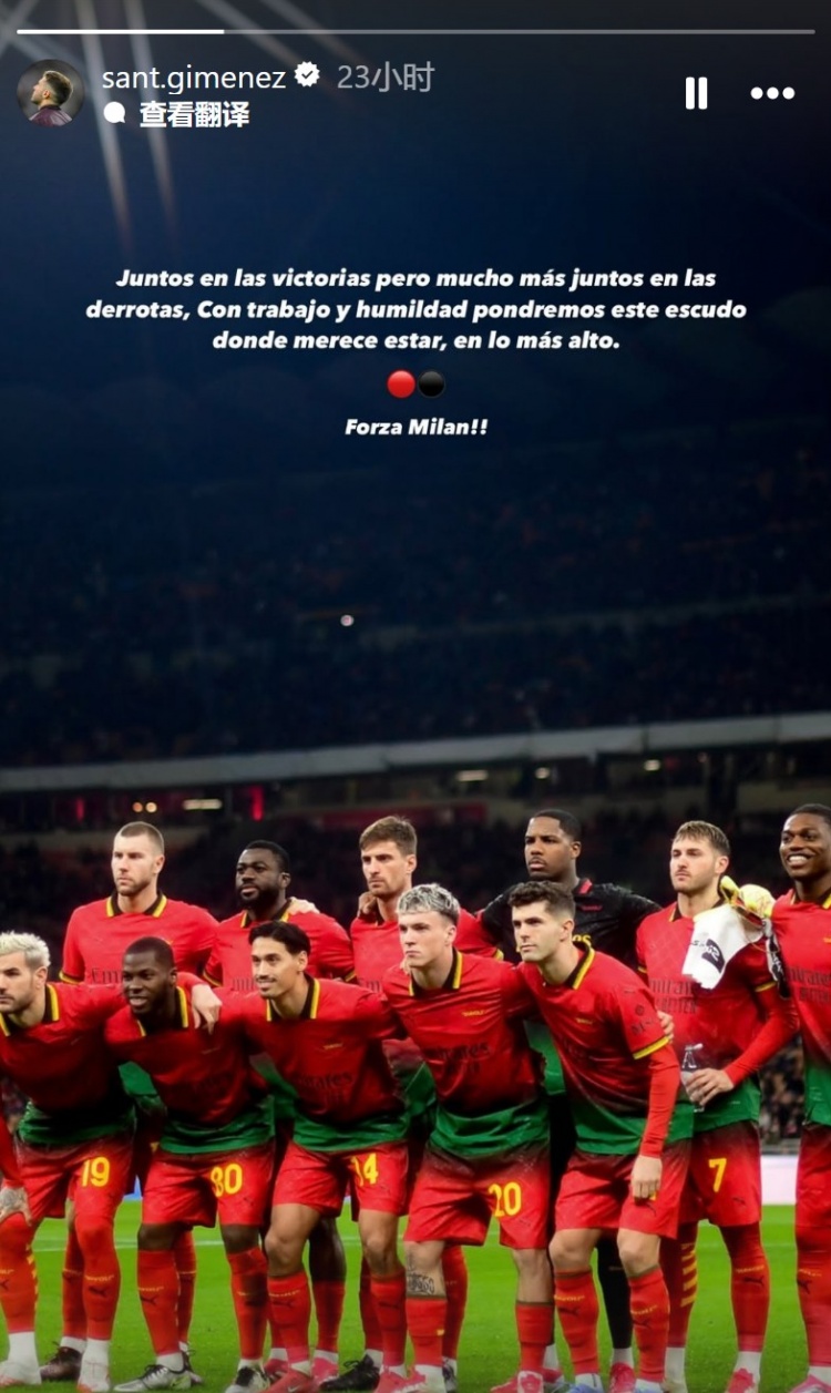 3月5日訊 意甲第27輪,米蘭1-2不敵拉齊奧,慘遭聯(lián)賽三連敗。賽后,S-希門尼斯更新社媒,為球隊鼓舞士氣。