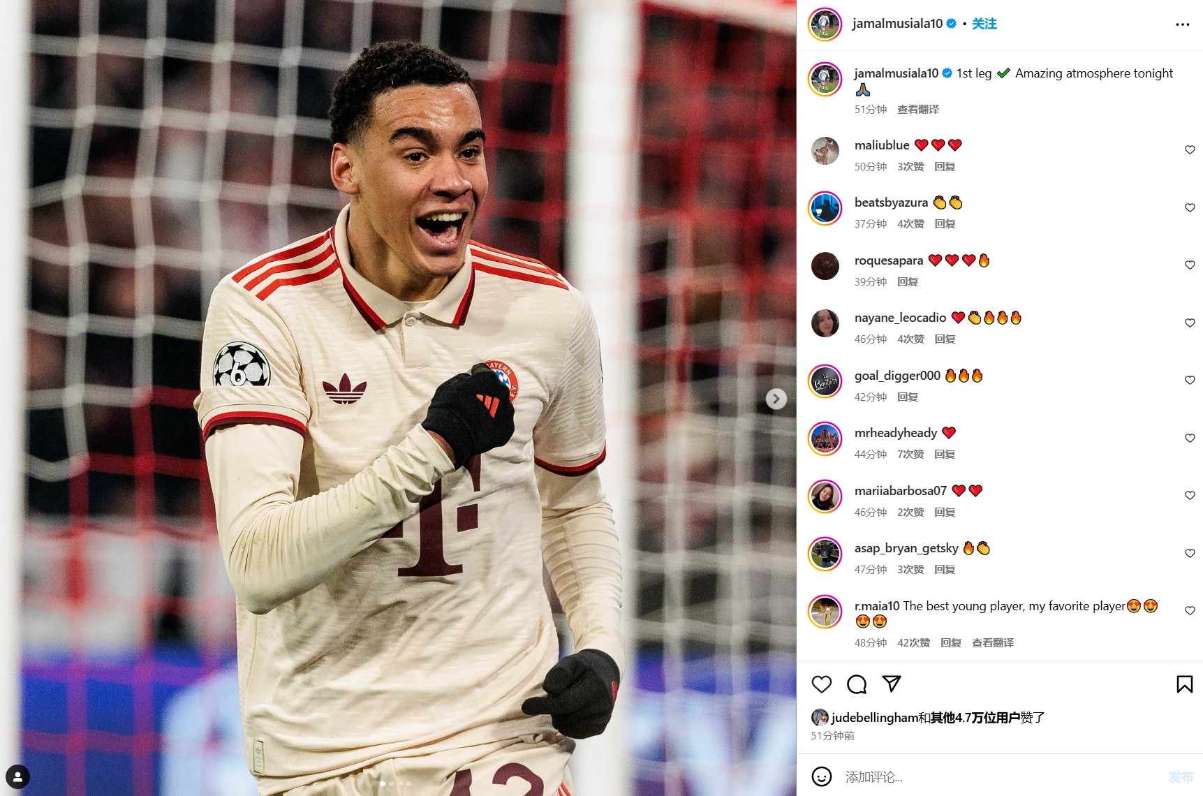 發(fā)布時(shí)間:2025年03月06日 07:50點(diǎn)擊:欄目:足球新聞 3月6日訊 歐冠1/8決賽首回合,拜仁3-0勒沃庫森。賽后本場比賽打進(jìn)1球的穆西亞拉更新社媒。穆西亞拉:“首回合取勝??,今晚的氣氛太棒了 除特別注明外,本站所有內(nèi)容均為九球直播整理排版,轉(zhuǎn)載請(qǐng)注明出處:穆西亞拉社媒:首回合取勝??,今晚的氣氛太棒了 本文標(biāo)簽: 足球 德甲 拜仁慕尼黑 歐冠