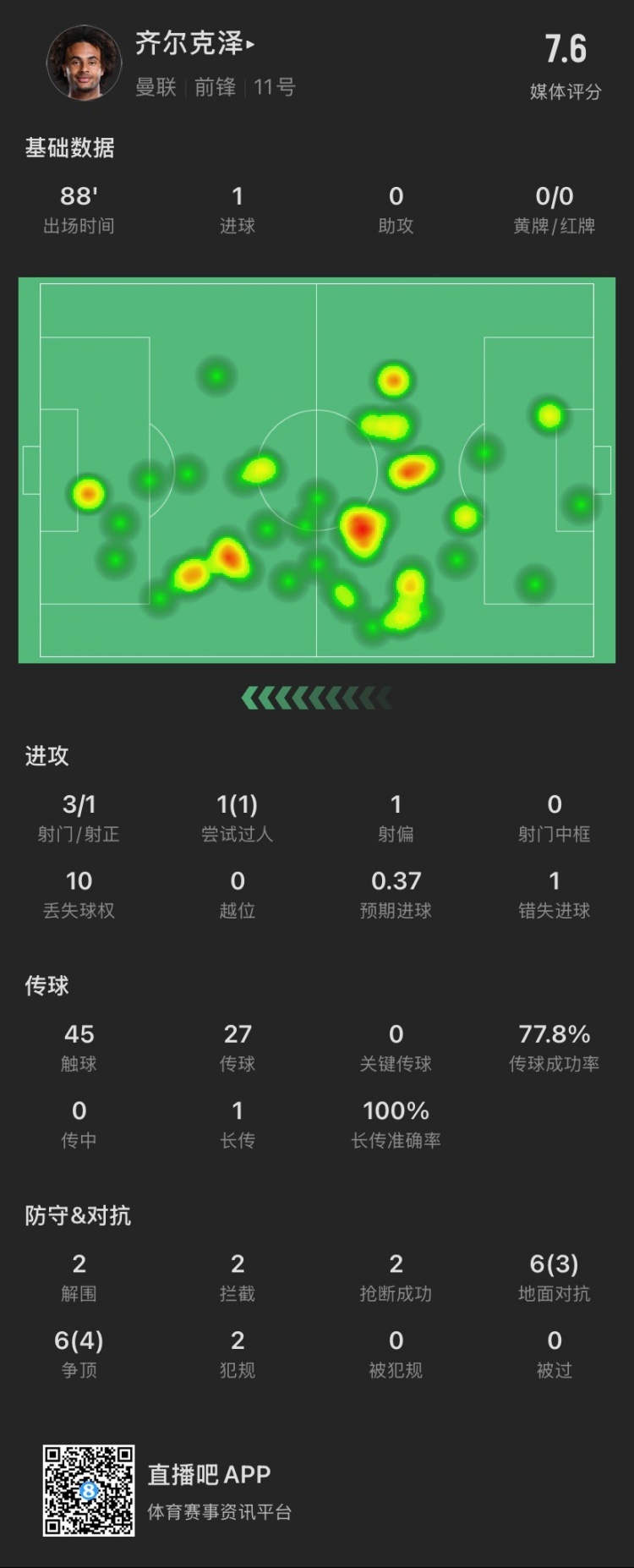 除特別注明外,本站所有內(nèi)容均為九球直播整理排版,轉(zhuǎn)載請(qǐng)注明出處:齊爾克澤本場(chǎng):3射1正進(jìn)1球,貢獻(xiàn)2解圍2搶斷,12次對(duì)抗成功7次