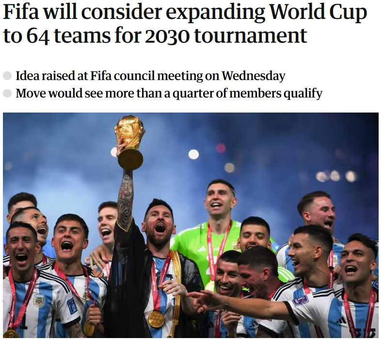 英國《衛(wèi)報(bào)》指出,如果2030世界杯擴(kuò)軍至64隊(duì),這對各大洲的影響將各不相同。