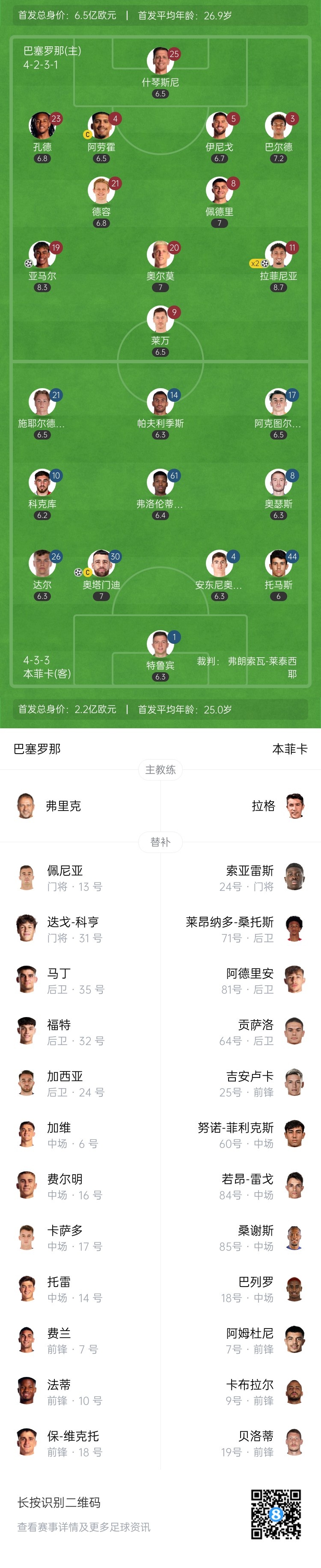 除特別注明外,本站所有內(nèi)容均為九球直播整理排版,轉(zhuǎn)載請(qǐng)注明出處:半場-巴薩3-1本菲卡總比分4-1領(lǐng)先 亞馬爾傳射拉菲尼亞雙響