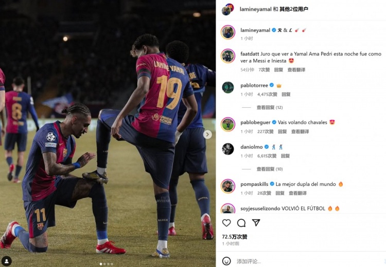 亞馬爾還通過社媒曬出自己的慶祝照,并配文:“bla bla”,似乎是在回擊近期對他的質(zhì)疑。
