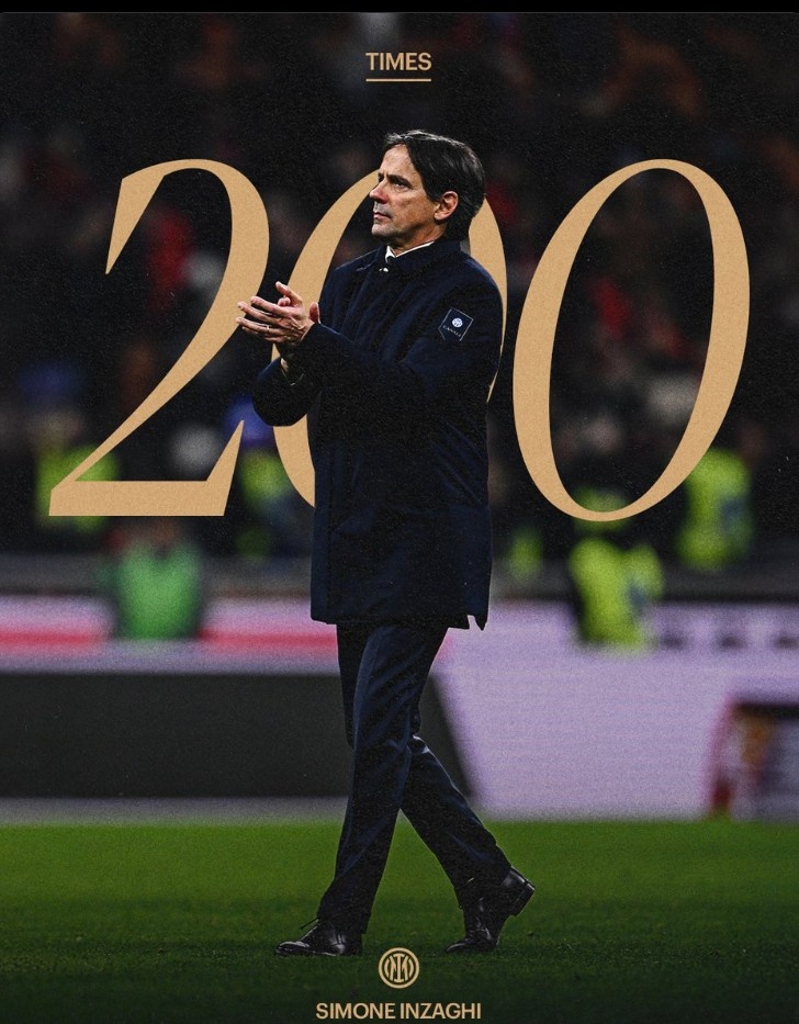 本場比賽也是主帥小因扎吉執(zhí)教國米各項賽事第200場里程碑之戰(zhàn),球隊官方也曬照紀(jì)念。