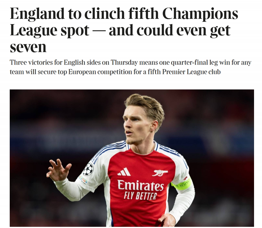 英超基本鎖定第五個歐冠名額,《泰晤士報(bào)》指出,理論情況下英超下賽季最多可以有7支球隊(duì)參加歐冠!