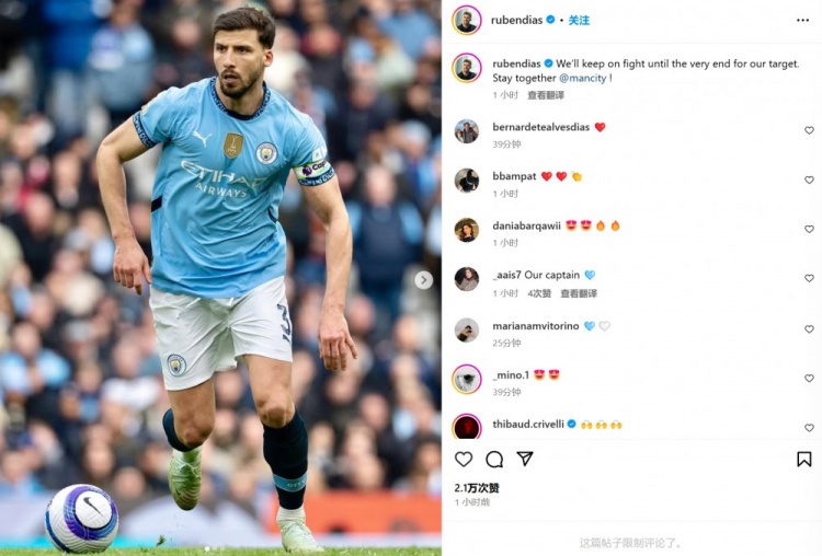 發(fā)布時間:2025年03月16日 05:50點擊:欄目:足球新聞 3月16日訊 曼城在本輪英超焦點戰(zhàn)2-2戰(zhàn)平布萊頓,隊長魯本-迪亞斯在賽后通過社媒發(fā)文。魯本-迪亞斯曬出自己的比賽照,并配文:“我們將會繼續(xù)為了目標而戰(zhàn)斗到最后一刻。團結起來@曼城俱樂部!”曼城在29輪聯賽過后積48分暫列英超第5,最終能否晉級下賽季歐冠的前景仍不明朗。 除特別注明外,本站所有內容均為九球直播整理排版,轉載請注明出處:戰(zhàn)平布萊頓!曼城隊長魯本-迪亞斯:會為目標繼續(xù)戰(zhàn)斗到最后一刻 本文標簽: 足球 英超 曼城 布萊頓
