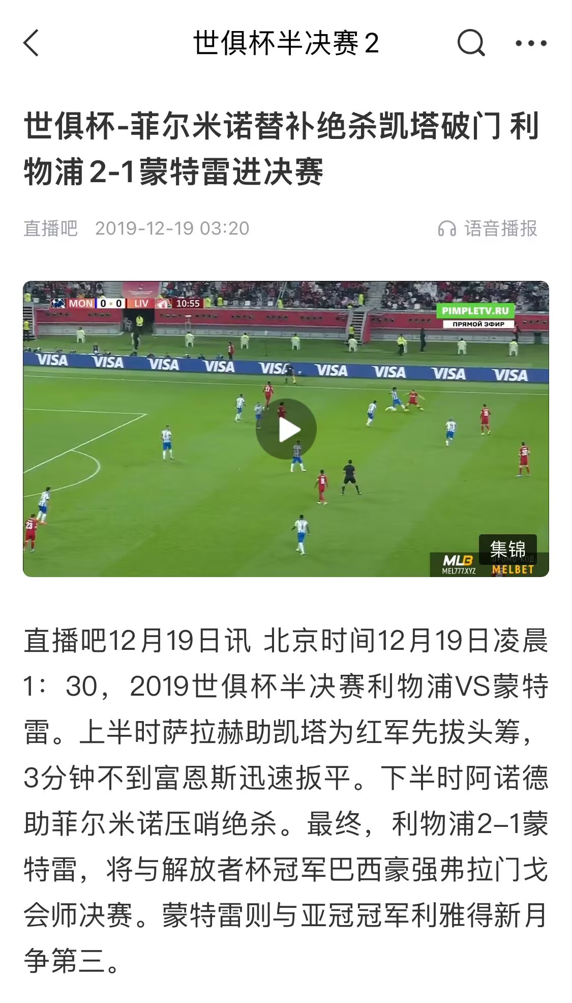 發(fā)布時(shí)間:2025年03月16日 12:50點(diǎn)擊:欄目:足球新聞 2019年12月18日,利物浦青年軍出戰(zhàn)聯(lián)賽杯,0-5慘敗維拉;2019年12月19日,利物浦2-1蒙特雷,挺進(jìn)世俱杯決賽。兩場(chǎng)比賽距離不到24小時(shí),世俱杯還是卡塔爾舉行。 除特別注明外,本站所有內(nèi)容均為九球直播整理排版,轉(zhuǎn)載請(qǐng)注明出處:利物浦曾在24小時(shí)內(nèi)踢2場(chǎng)比賽,還是在兩個(gè)不同大洲 本文標(biāo)簽: 足球 中國足球 英超 利物浦