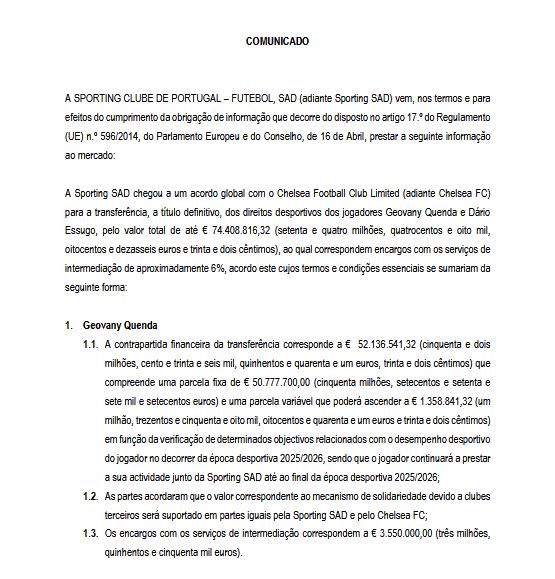 葡體與切爾西就球員昆達和埃蘇戈的永久轉會達成全面協(xié)議,總金額為74408816.32歐元(約7441萬歐),其中包括約6%的中介服務費用。