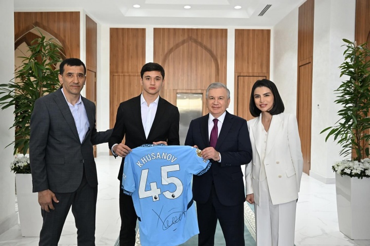 發(fā)布時間:2025年03月22日 23:50點擊:欄目:足球新聞 3月22日訊 國際比賽日期間,胡桑諾夫回到了烏茲別克斯坦參加世預賽。在此期間,他受到了烏茲別克斯坦總統(tǒng)米爾濟約耶夫的接見。在會見中,胡桑諾夫向米爾濟約耶夫贈送了自己在曼城的45號簽名球衣。今年冬窗,只有21歲的烏茲別克斯坦國腳胡桑諾夫加盟了曼城,轉會費總價最高可達5000萬歐。 除特別注明外,本站所有內容均為九球直播整理排版,轉載請注明出處:為國爭光!胡桑諾夫受烏茲別克斯坦總統(tǒng)接見,向對方贈送曼城球衣 本文標簽: 足球 烏茲別克斯坦 英超 曼城