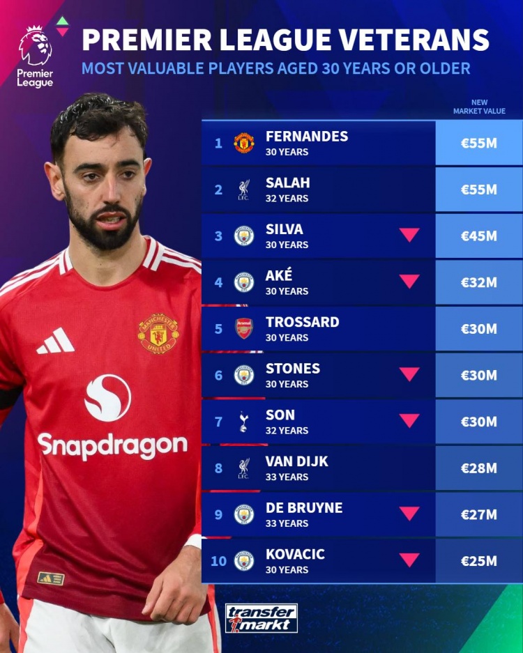 除特別注明外,本站所有內(nèi)容均為九球直播整理排版,轉(zhuǎn)載請注明出處:英超年齡30+球員身價榜:B費、薩拉赫5500萬歐居首,B席第三