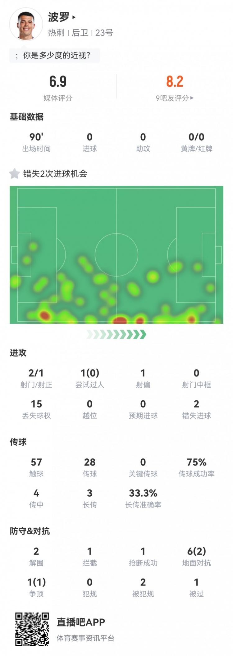 1月9日訊 英聯(lián)杯半決賽首回合,熱刺主場1-0利物浦。波羅首發(fā)打滿全場,球員全場重點數(shù)據(jù)如下↓