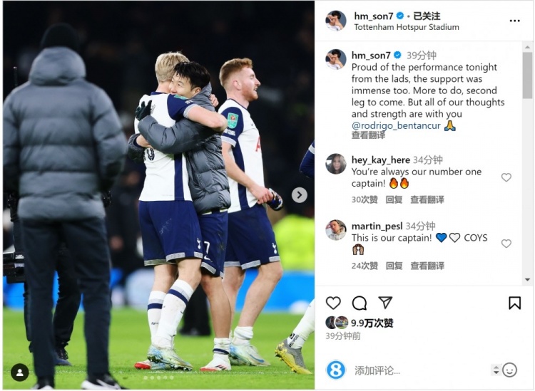孫興慜賽后在社交媒體上寫(xiě)道:“為小伙子們今晚的表現(xiàn)感到驕傲,球迷們的支持也很棒。還有更多的事情要做,次回合比賽即將到來(lái)。但我們所有的思緒和力量都與你同在,本坦庫(kù)爾?!?/p>
