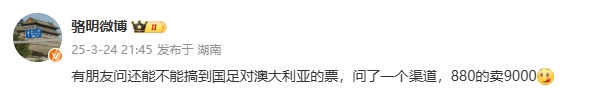發(fā)布時間:2025年03月24日 23:50點(diǎn)擊:欄目:足球新聞 國足杭州vs澳大利亞票價情況03月24日訊 《體壇周報》總編輯駱明發(fā)文談到了明天國足vs澳大利亞的球票情況。駱明表示:有朋友問還能不能搞到國足對澳大利亞的票,問了一個渠道,880的賣9000[饞嘴] ???國足杭州主場vs澳大利亞的球票于3月7日17點(diǎn)開票,15分鐘內(nèi)多個平臺顯示售罄。 除特別注明外,本站所有內(nèi)容均為九球直播整理排版,轉(zhuǎn)載請注明出處:奪少?駱明:有人問還能不能搞到國足球票 問了一個渠道880賣9000 本文標(biāo)簽: 足球 中超 中國足球 中國男足