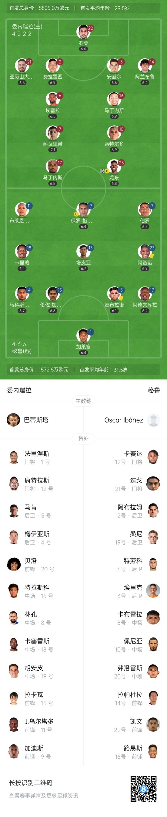 3月26日訊 北京時(shí)間3月26日08:00,世預(yù)賽南美區(qū)第14輪委內(nèi)瑞拉迎戰(zhàn)秘魯?shù)谋荣?,上半場龍東失單刀+點(diǎn)射破門首開記錄,布賴恩雷納破門無效,半場結(jié)束,委內(nèi)瑞拉1-0秘魯。