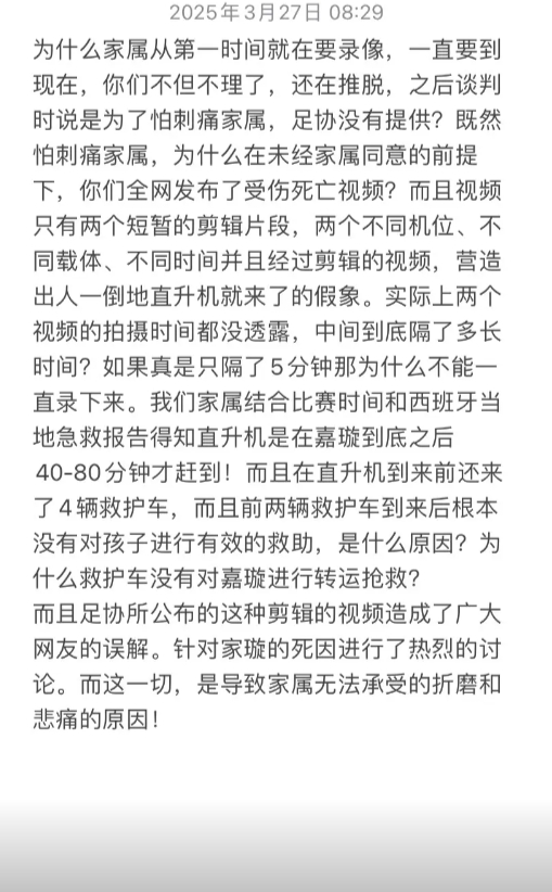 郭嘉璇家屬質(zhì)問北京足協(xié):為何視頻不連貫?直升機(jī)40-80分鐘才到