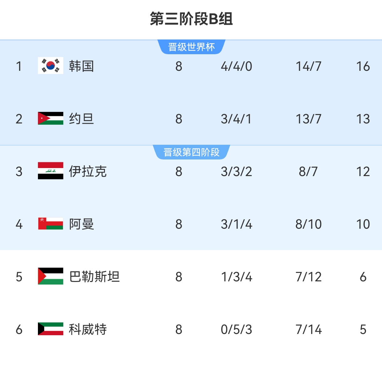在3月的世預賽中,原本形勢大好的伊拉克2-2平了科威特,1-2遭巴勒斯坦絕殺。而爭2對手約旦拿了4分,一舉將積分反超。