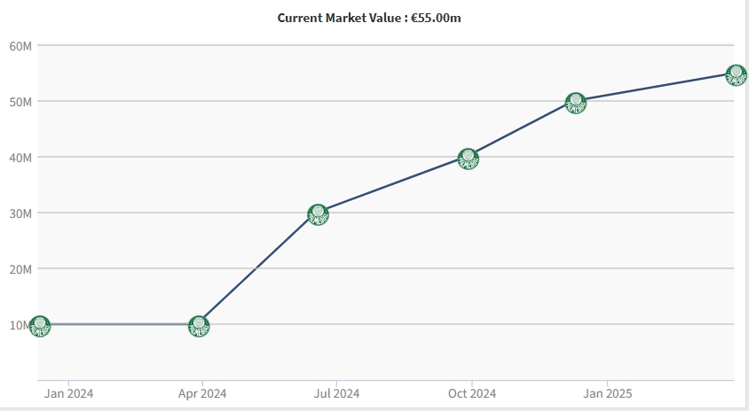 03月28日訊 德轉(zhuǎn)今日更新了巴甲的球員身價(jià),即將在下賽季加盟切爾西的17歲小將埃斯特旺身價(jià)上漲500萬歐,來到5500萬歐。