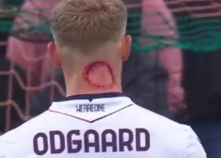 在3月29日博洛尼亞1-0擊敗威尼斯的比賽中,奧德加德被發(fā)現(xiàn)脖子后面有一塊巨大的紅斑。在比賽期間,社交媒體上充斥著球迷們的各種猜測,很多人擔(dān)心他和僵尸發(fā)生沖突。