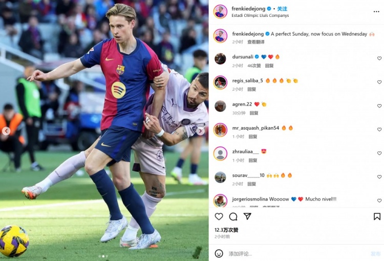 一夜重返巔峰!德容社媒曬照:完美的周日,接下來專注再戰(zhàn)馬競
