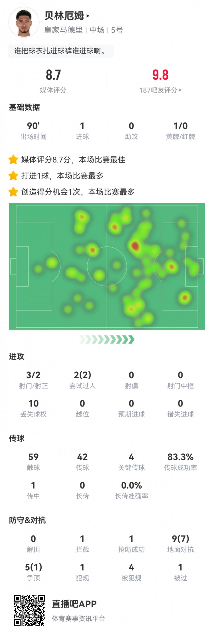除特別注明外,本站所有內(nèi)容均為九球直播整理排版,轉(zhuǎn)載請(qǐng)注明出處:貝林厄姆數(shù)據(jù):1進(jìn)球,4次關(guān)鍵傳球,8次成功對(duì)抗,全場(chǎng)最高8.7分