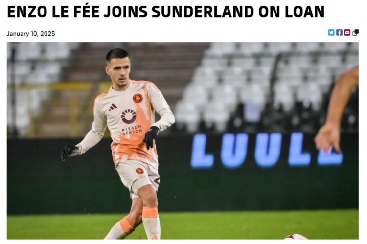 羅馬俱樂(lè)部宣布與桑德蘭隊(duì)就恩佐-勒費(fèi)的臨時(shí)轉(zhuǎn)會(huì)達(dá)成協(xié)議。