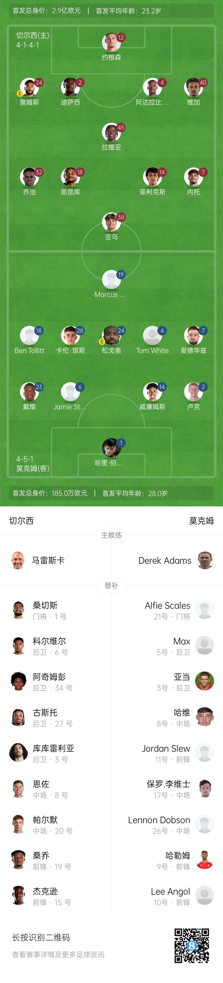 目前切爾西在英超積分榜上排名第4,莫克姆則是英乙倒數(shù)第二。